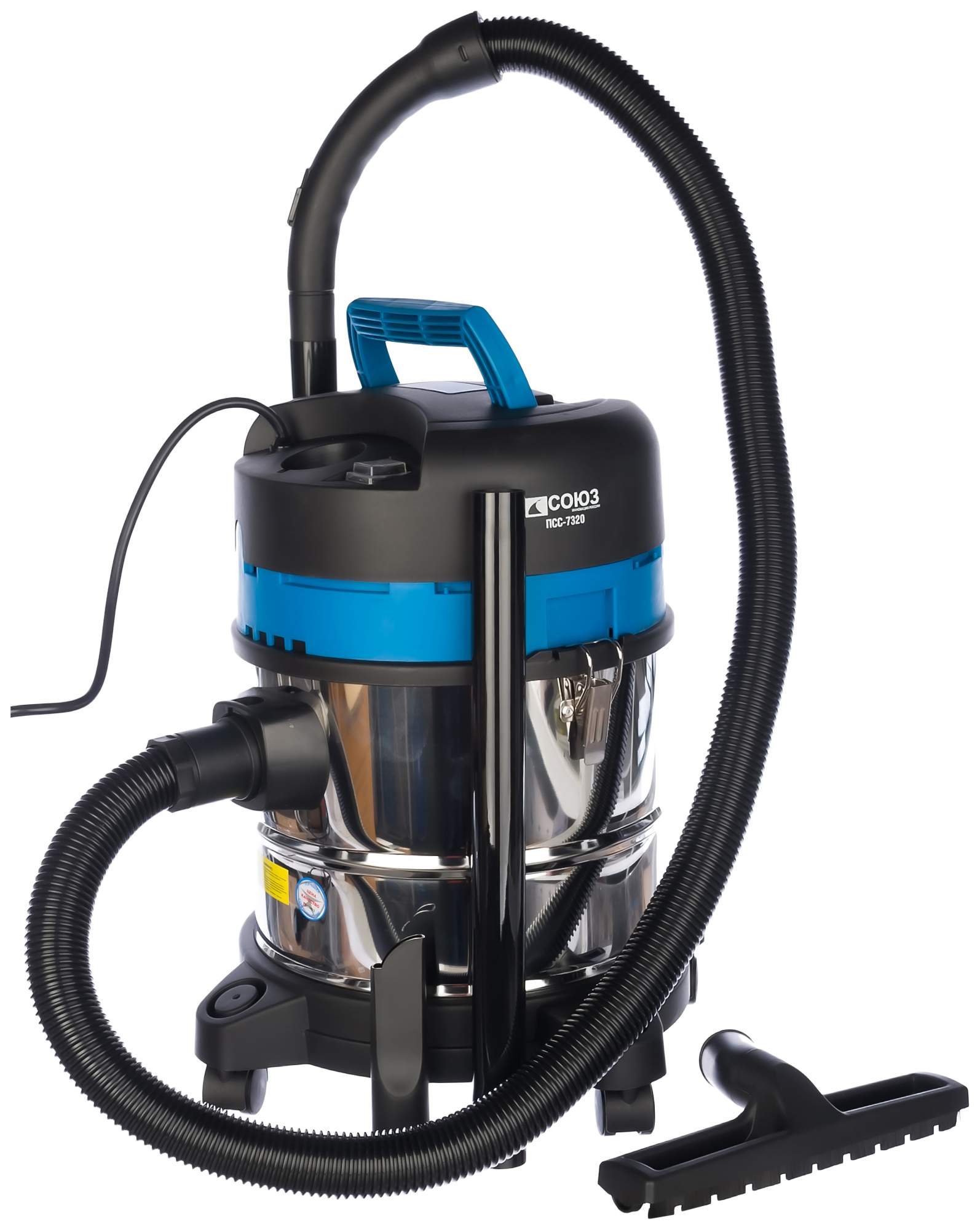 Промышленный пылесос с пылесборником из нержавеющей стали емкостью 20 л для сухой уборки с функцией сбора жидкости может работать с пылью, мелким мусором, мокрой грязью для чего предусмотрены 3 сменные насадки.