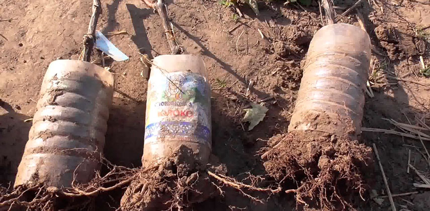 - Бутылки из-под шампанского, вина и т.п вкапывают наклонно так, чтобы горлышко было на уровне земли, и заливают туда раствор мёда (или мёда и перебродившего пива). Заползшие на запах в бутылки медведки не смогут выбраться назад.