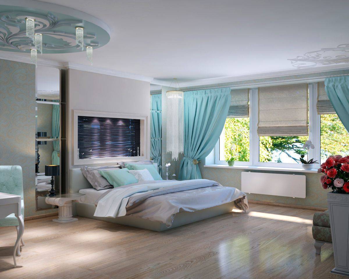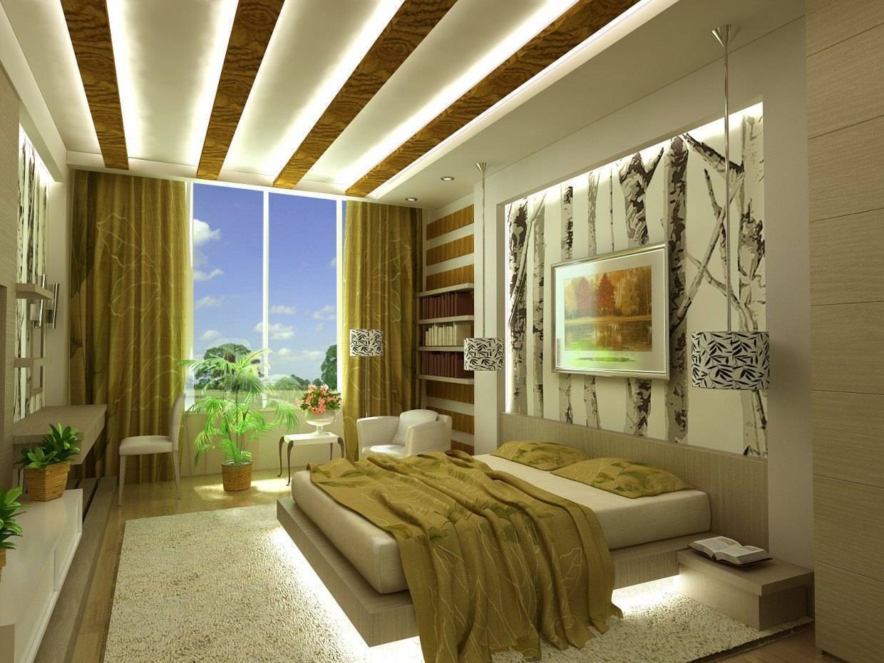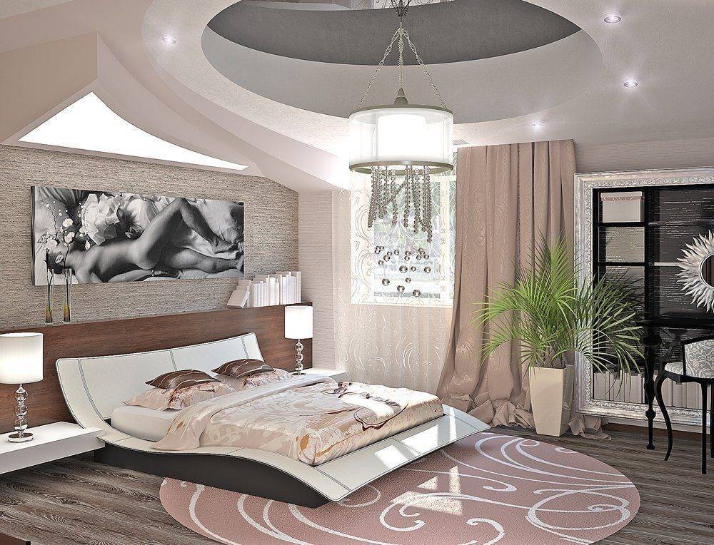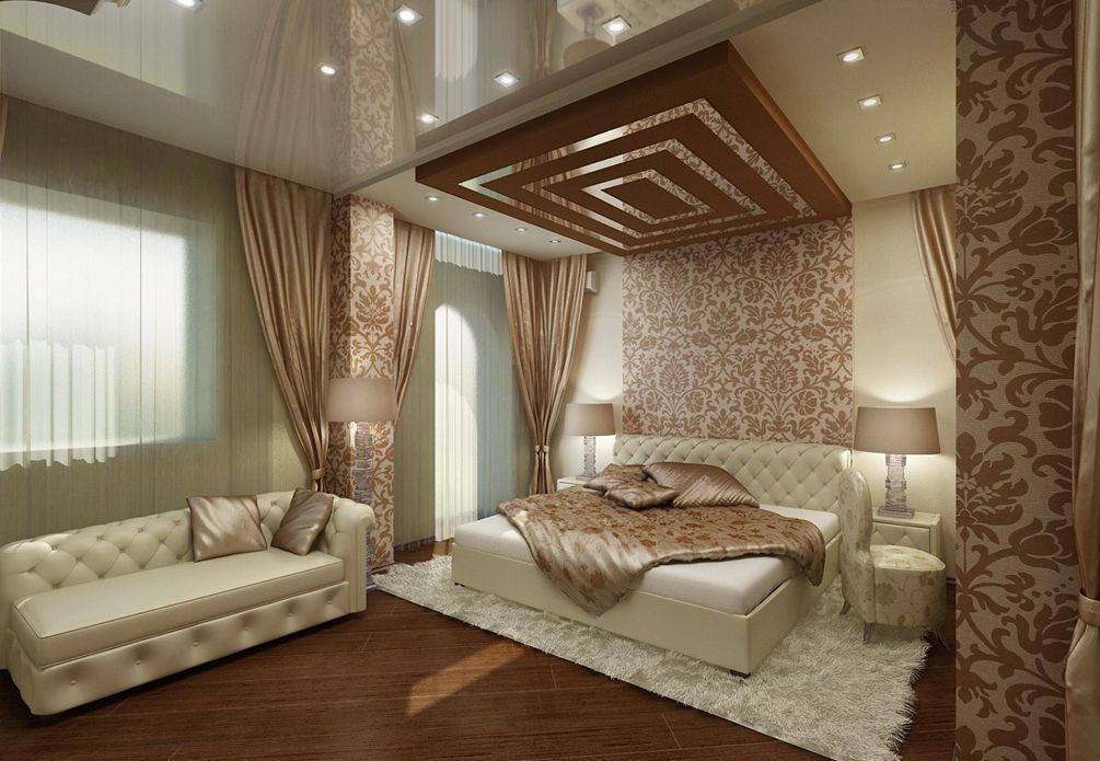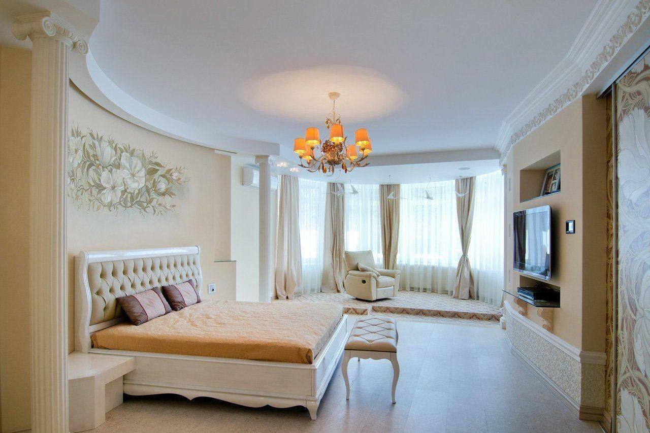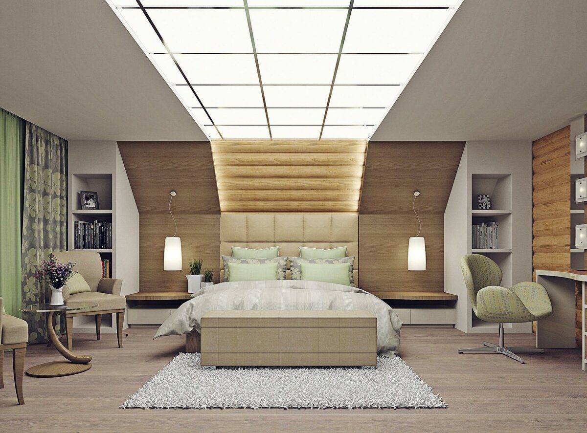 Потолок в спальне. В дизайне современной спальни редко применяются сложные многоуровневые потолки, на сегодняшний день, его все чаще выравнивают в идеальную белоснежную поверхность.