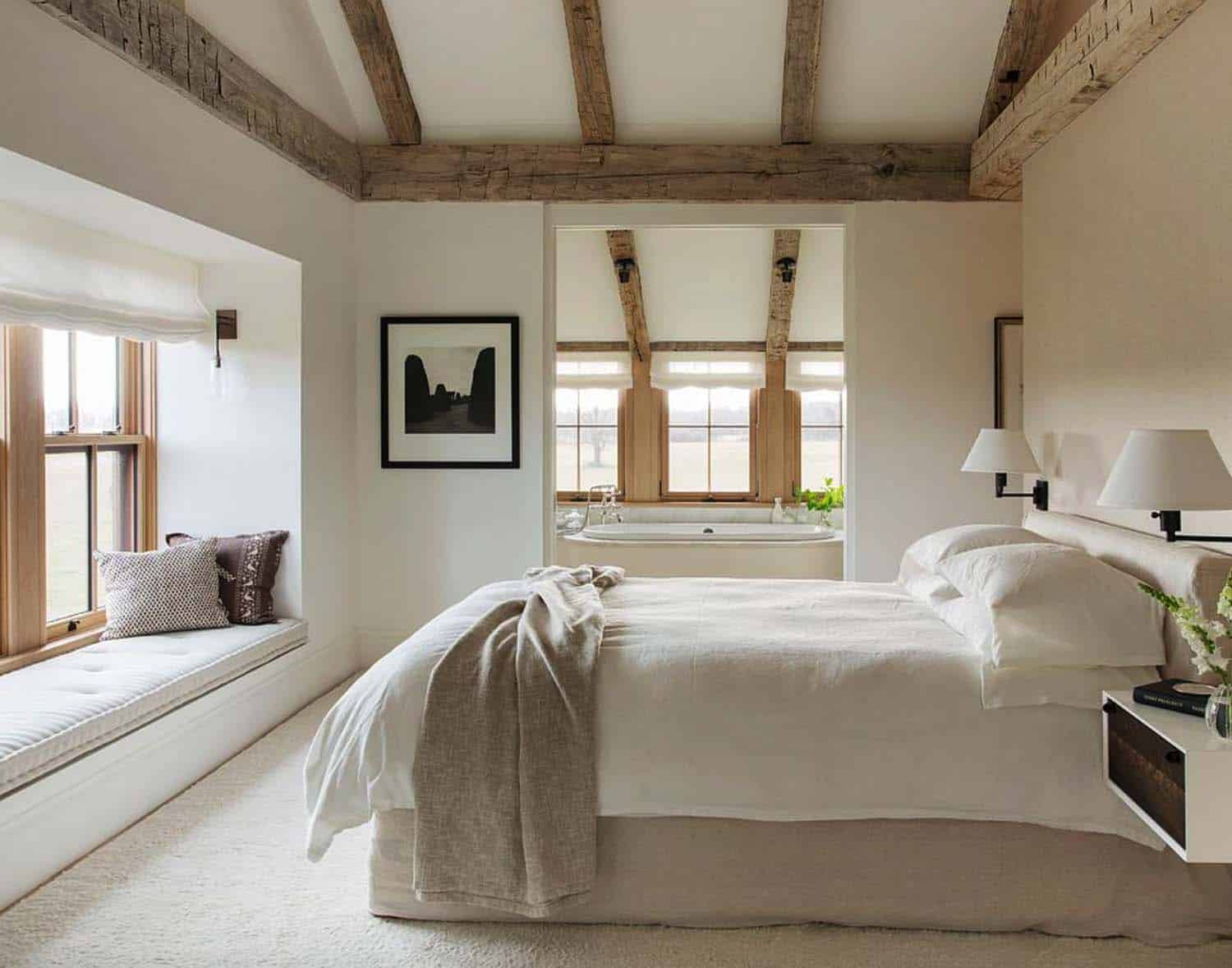 Любителям деревенского дизайна понравится использование вторичного дерева в современной спальне
