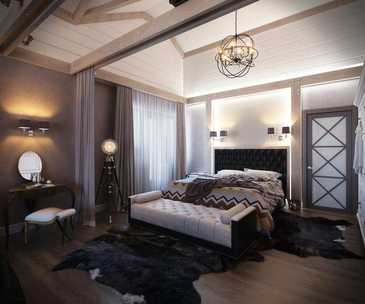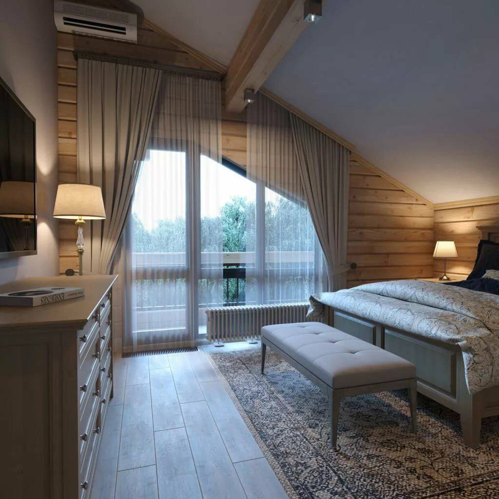 Планируя дизайн спальни в деревянном доме из бруса, нередко отдают предпочтение деревенским направлениям. Среди обывателей с патриотическими взглядами в фаворе проекты в духе русской усадьбы, не менее востребованы и интерьеры прованс, кантри, шале, ранчо.