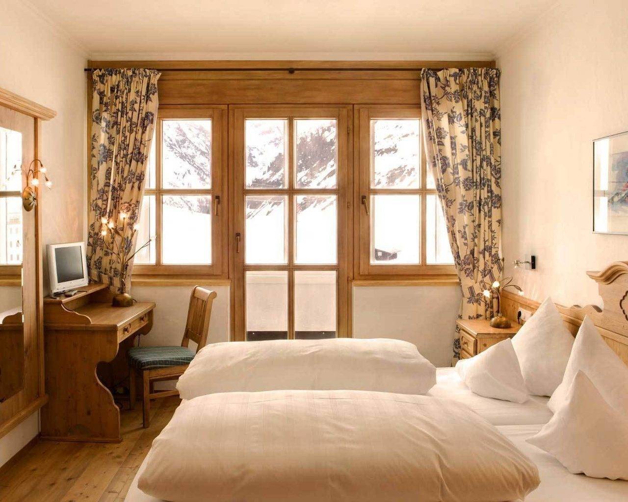 Спальня в стиле рустик вмещается не только двуспальную кровать, но и кресло, и рабочую зонуИсточник ski-boutique.co.uk
