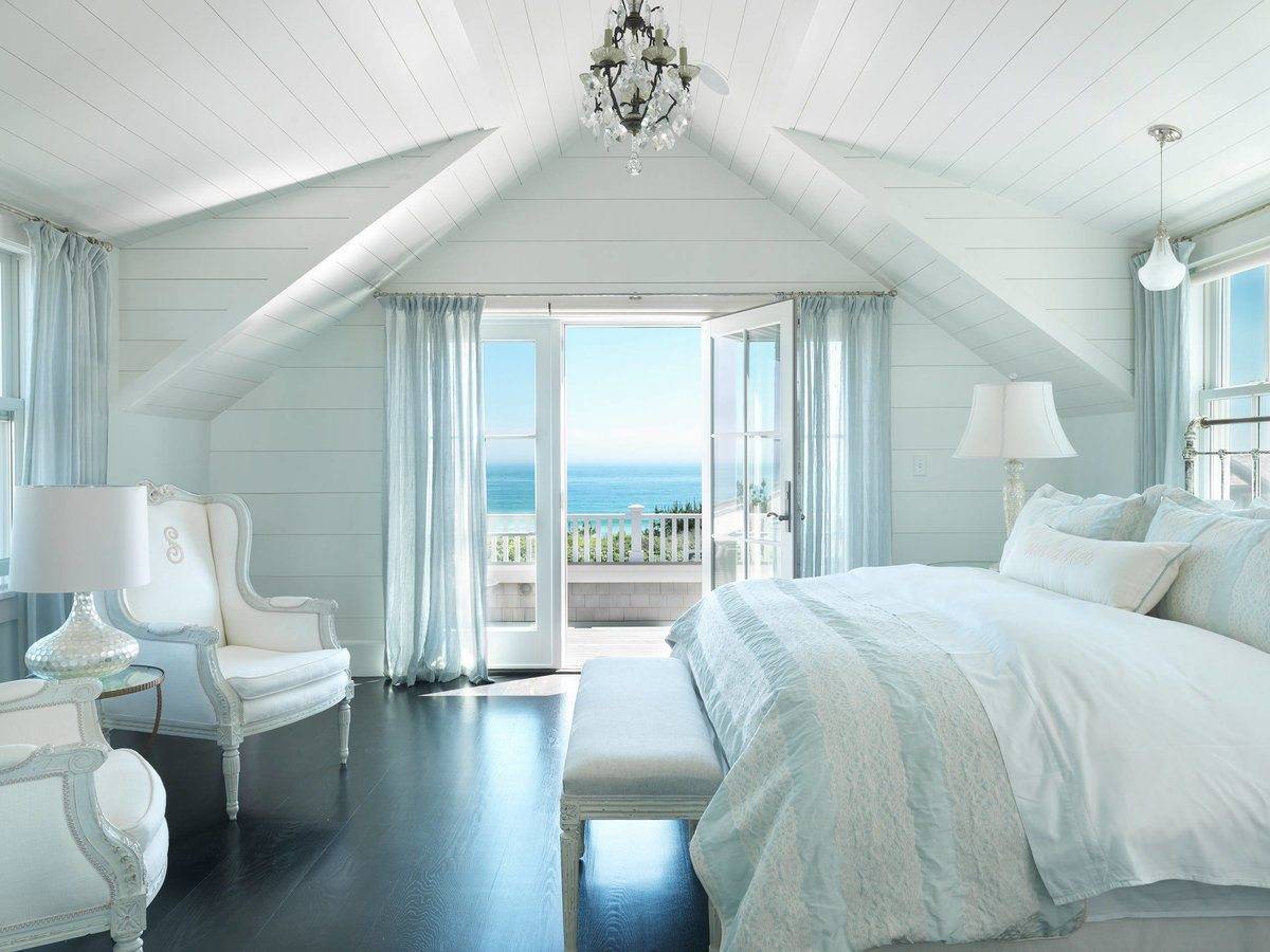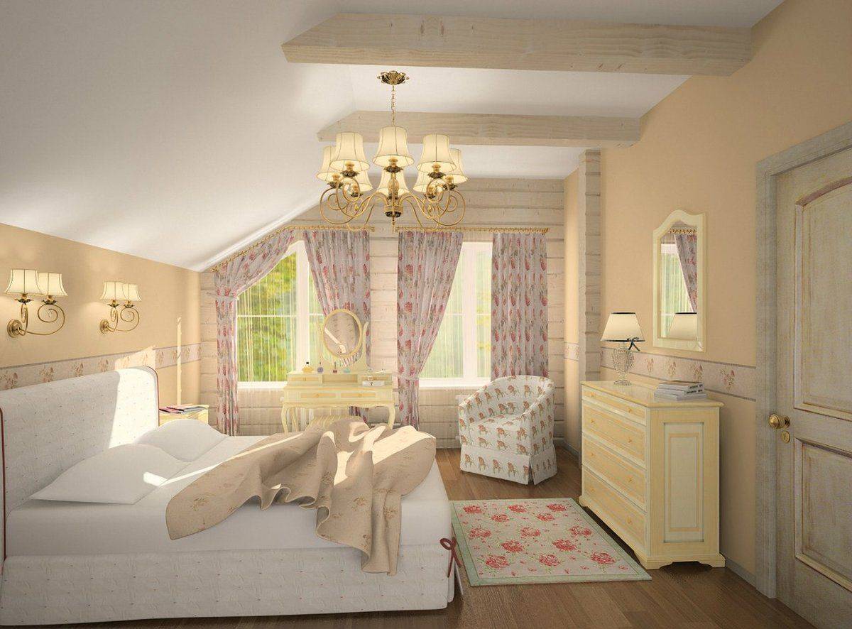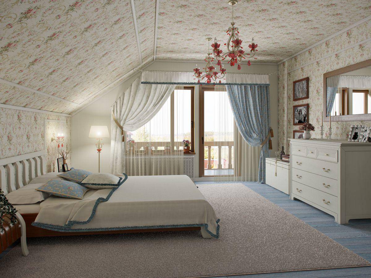 Характерное для домов из французской глубинки романтическое настроение создается с помощью выбеленных поверхностей и цветочных мотивов в декоре зоны уединения. Оформление в стиле прованс идеально подходит, если спальня в деревянном доме маленькая, и хочется визуально раздвинуть границы пространства с применением дизайнерских приемов.