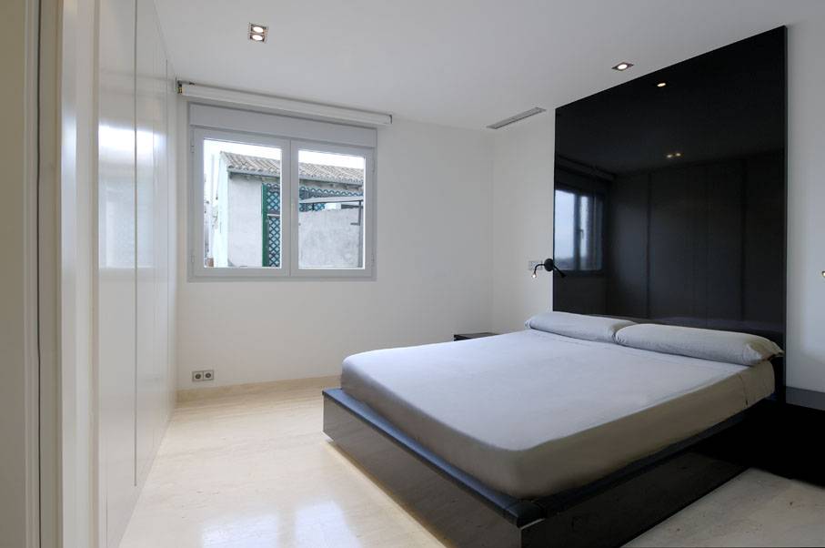 Интересны черно-белые минималистские спальни. Другой вариант – комбинирование белого и серого, при этом черный вводится акцентно. Можно скомбинировать серый и черный, разбавив его белым.