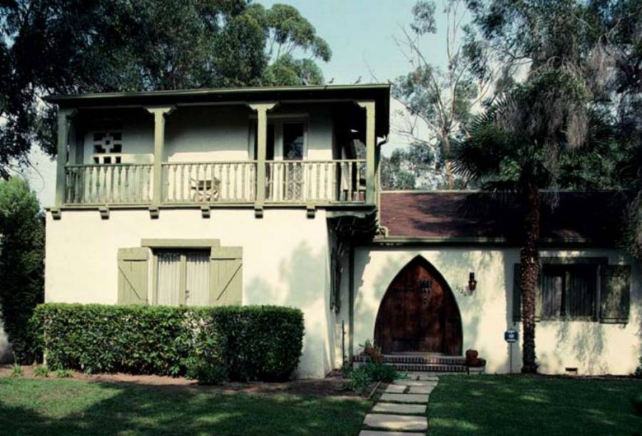 Другой подвид, который называется «стиль испанских миссионеров». Это — нарочито мрачные приземистые одноэтажные дома с оштукатуренными стенами, темной черепичной крышей и нарочито грубыми деревянными дверями и окнами.