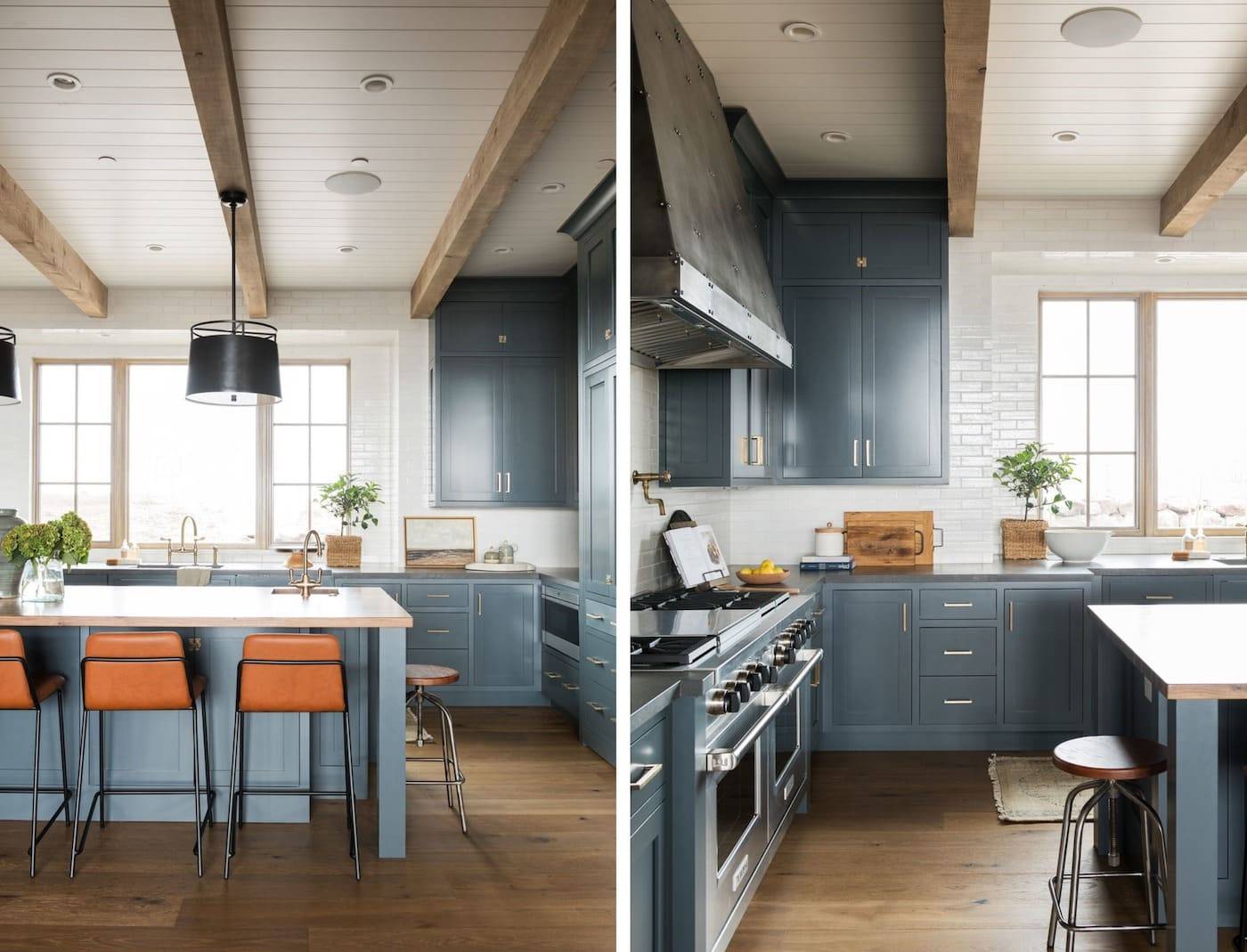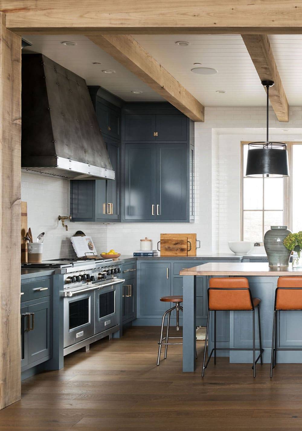 Также, классический элемент кухни в американском стиле — барная стойка, которая может совмещать в себе функции обеденного стола и поверхности для готовки. Кухня часто украшается вазами с живыми цветами или коваными железными элементами, популярное напольное покрытие — паркет или плитка.