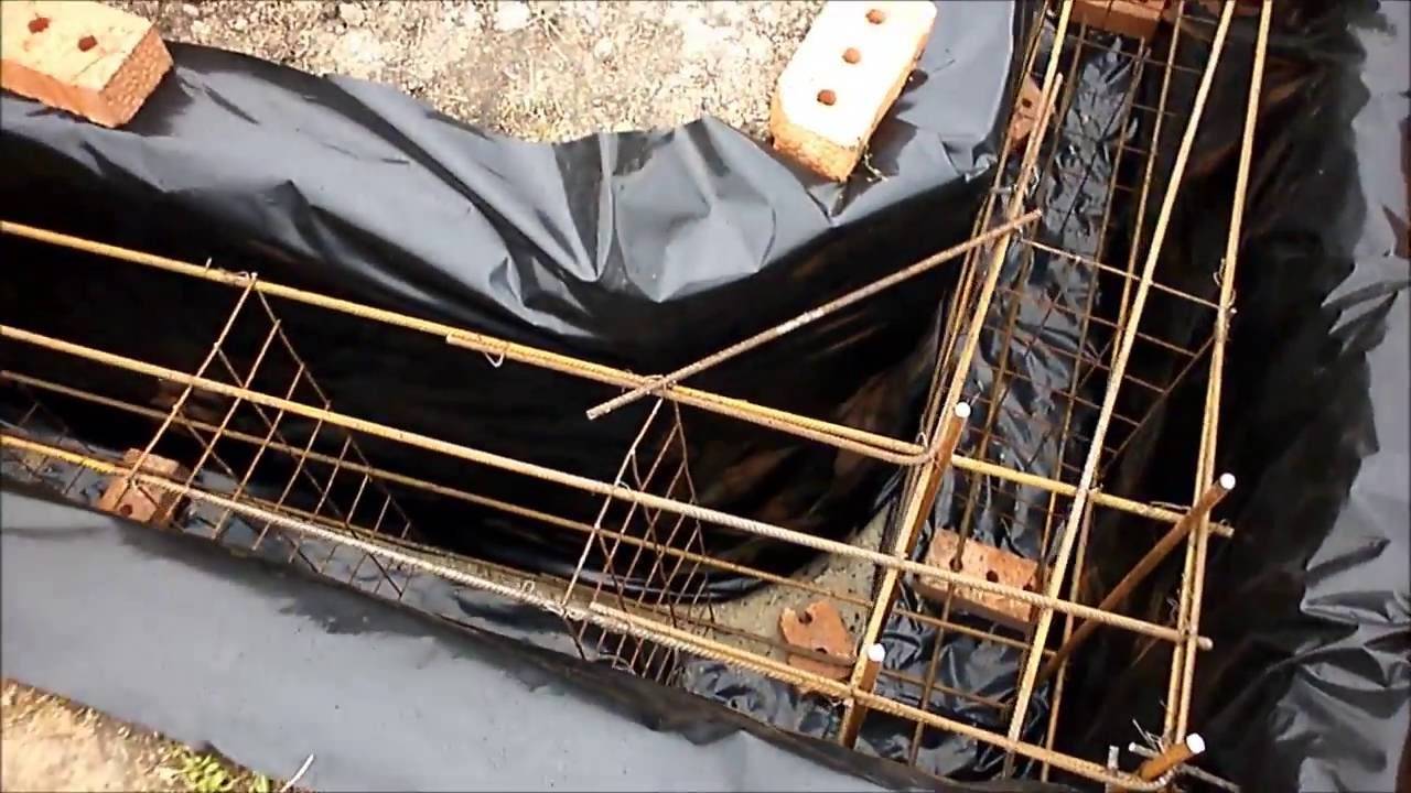 Подготовленные для армирования прутья укладываются в траншею в соответствии с описанными выше требованиями после установки опалубки. Ярусы — строго горизонтальны к земле. На следующем этапе, когда установлены и перевязаны все пояса, можно переходить к заливке бетона