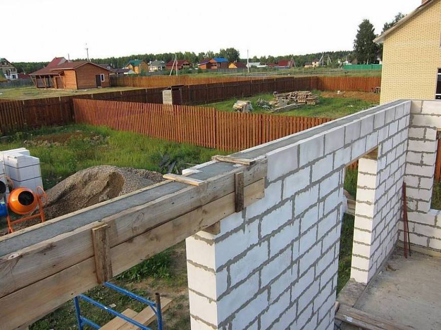 Если для кладки несущих стен дома используются блоки газобетона и пенобетона, то устройство монолитного армированного пояса обязательно.