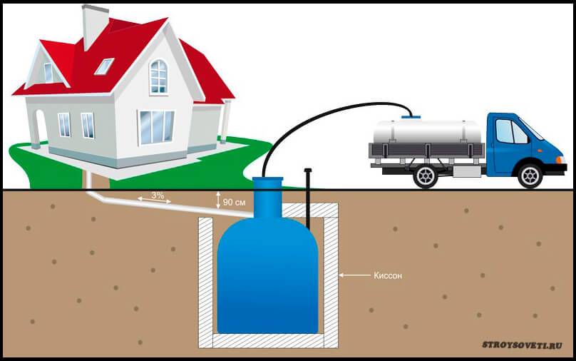 Способ очень простой, но имеет некоторые недостатки: угроза загрязнения грунтовых вод, наличие постоянного неприятного запаха, необходимость частого вызова специализированного транспорта для откачки.