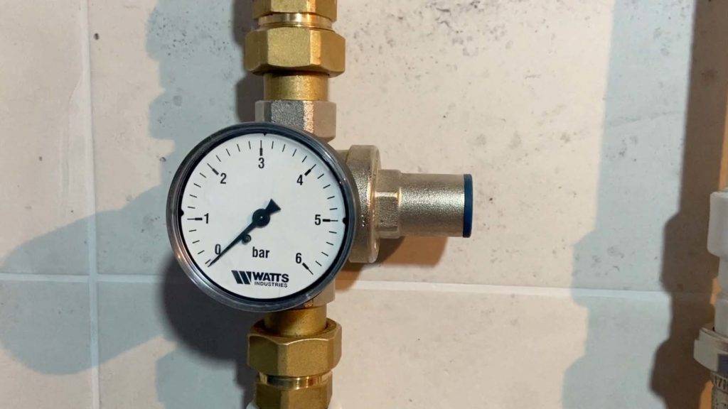 Данный прибор имеет несколько типов конструкции (поршневой или мембранный). В данном случае речь пойдёт о конструкции поршневого типа. Это так называемый дополнительный элемент ограничения давления в системе после реле насосной станции. Обычно давление 4 бар то же считается высоким показателем. На редукторе можно выставить 1-1,5 бар, что обеспечит стабильную эксплуатацию всей системы в целом.