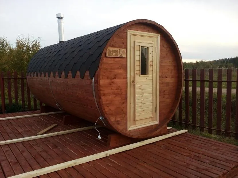 Чтобы времяпрепровождение в бане-бочке было максимально удобным, особое внимание уделите выбору дерева, из которого оно будет строиться. Стационарную баню можно возвести почти из любого материала, ведь внутри неё можно соорудить обшивку из более подходящего сырья. С баней-бочкой такой вариант не подходит