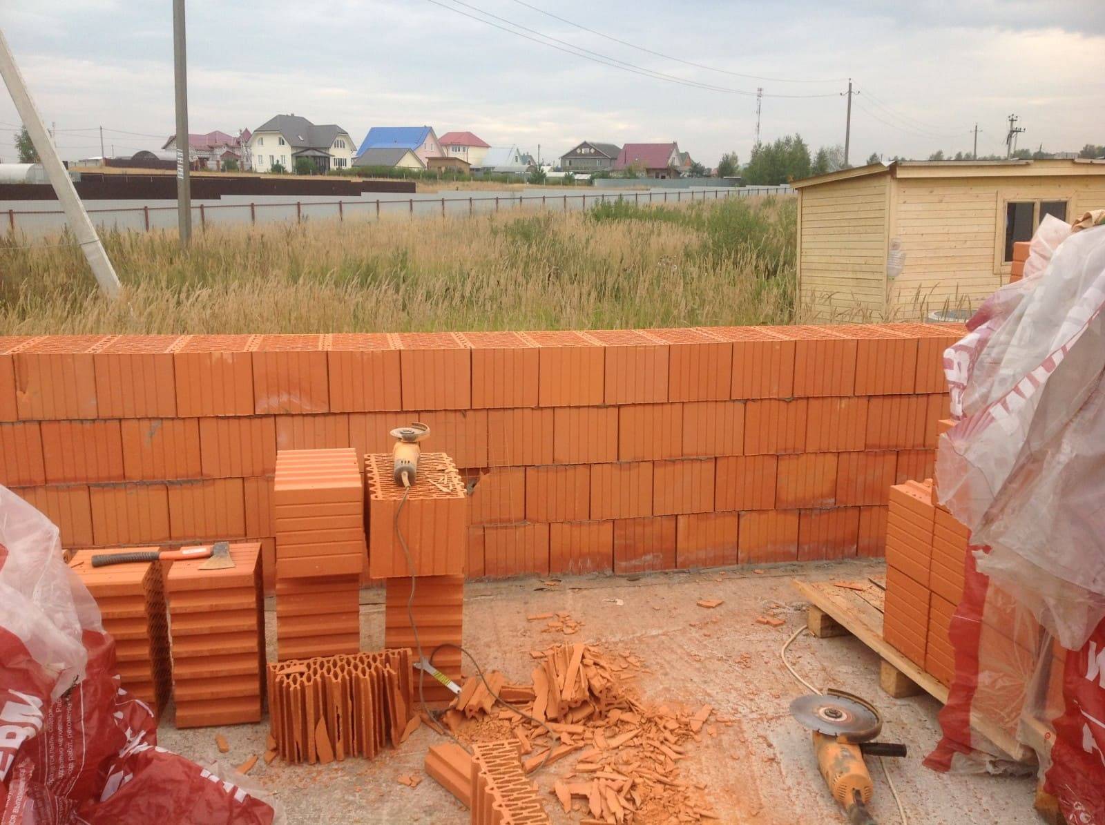 Для возведения стен подойдут пустотелые блоки. Первый блок нужно уложить в углу, выровнять его с помощью уровня. Для этого нужно использовать резиновый молоток, обычный может его разрушить. После таким же образом уложить блоки в остальные углы. Далее убедитесь в том, что все блоки стоят максимально ровно. Натяните между ними шнуры, которые обозначат будущие стены. Выложите первый ряд блоков.