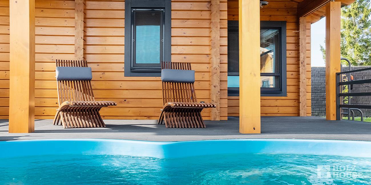 Если бассейн находится в пристройке или вообще в отдельном здании, то он может и не поддерживать стиль дома. Очень приятное и интересное решение — это бассейн в зимнем саду. Много стекла, дерева и живых растений — из такого бассейна не захочется уходить, особенно если в соседнем помещении будет сауна, а возле бассейна появится небольшая барная стойка и несколько шезлонгов.