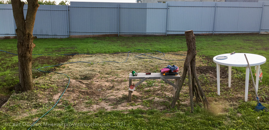Когда я засаживал газонной травой некоторую часть участка, решил оставить место под будущую площадку для отдыха. Даже не под беседку. Просто хотел сделать некую песчаную полянку, поставить туда шезлонги, столик для угощений, рядом расположить бассейн. Сделать минипляж, где можно поваляться на солнышке, позагорать, выпить бутылочку холодненького пивка. А потом окунуться в бассейн и снова греться на солнышке. И так по кругу, пока начальство снова не озадачит какой-нибудь работой.