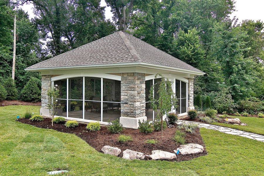 Когда-то очень популярные, сегодня каменные беседки встречаются на приусадебных участках все реже. Однако они — отличный вариант для строительства в случае, если внутри предполагается размещать источник открытого огня. И это понятно, ведь камень пожаробезопасен. Также стоит упомянуть внешний вид: правильно уложенный камень или кирпич может быть очень красив.