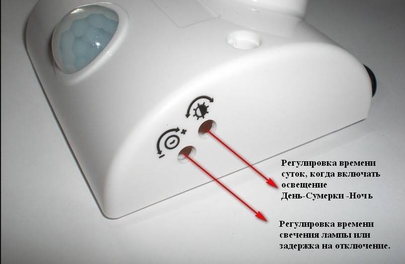 Если датчик включает свет правильно, но есть проблемы с выключением, первым делом нужно проверить выключатель задержки света. Возможно, регулятор TIME настроен на максимальное время работы, поэтому интервалы между срабатываниями слишком короткие: лампа не успевает выключиться.