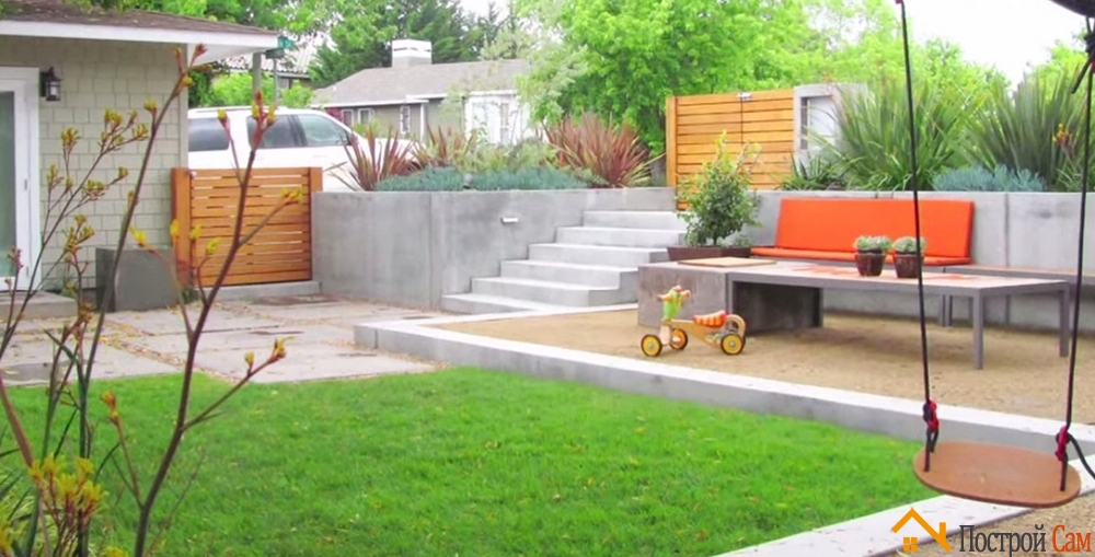 Как видите, неровный участок – это не приговор, а хорошая основа для интересного дизайнерского решения. А при владении базовыми навыками в строительстве можно всю работу сделать своими руками, неплохо при этом сэкономив.