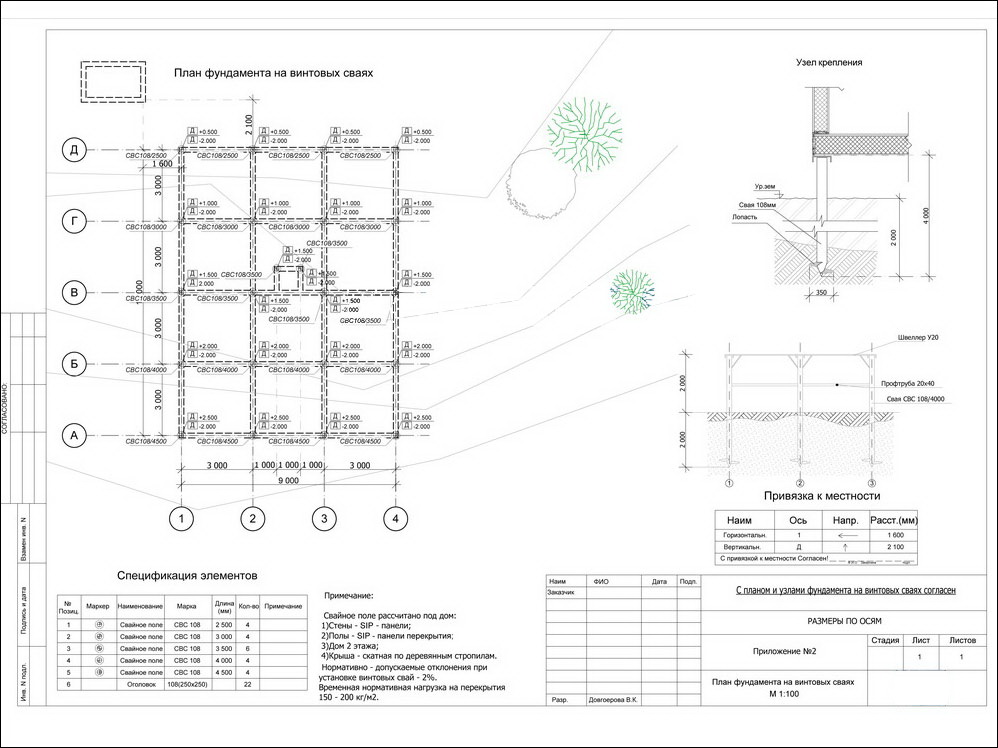- спецификация элементов фундамента (свай) с указанием их марок и количества;