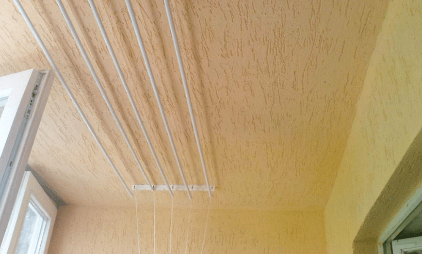 В основном потолок красят, когда балкон не застеклен и открыт. Необходимости покупать дорогие материалы нет, т. к. возможно попадание осадков. Краску также используют и для закрытых балконов.
