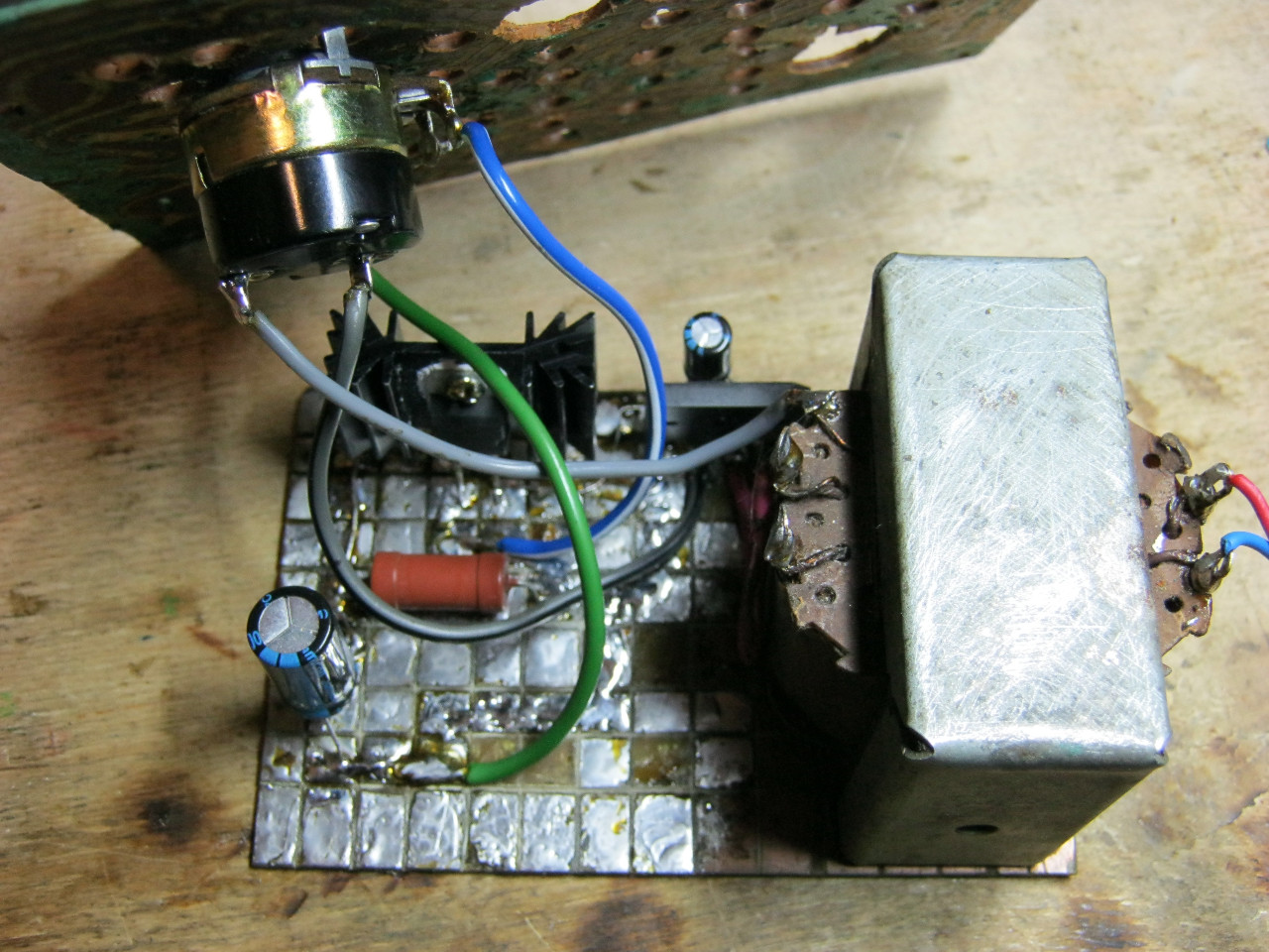 Завершив монтаж, проверяем выходное напряжение, изменяя положение переменного резистора.