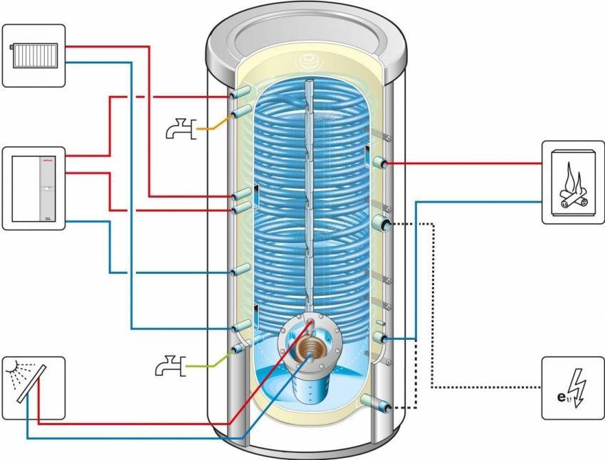 Устройство теплоаккумулятора и рациональное подключение внешних приборов