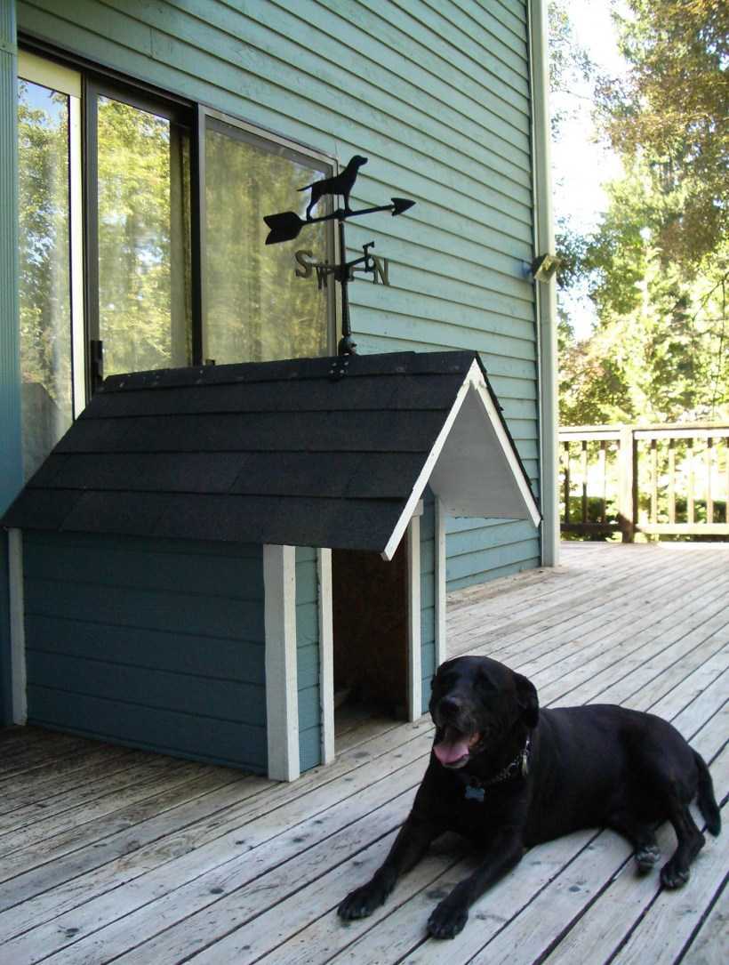 Вообще-то, собаки не так часто прячутся в будке и предпочитают проводить больше времени на открытом воздухе. Поэтому перед будкой собаки лучше соорудить что-то вроде навеса с настилом, чтобы собаке было удобно сидеть или лежать.