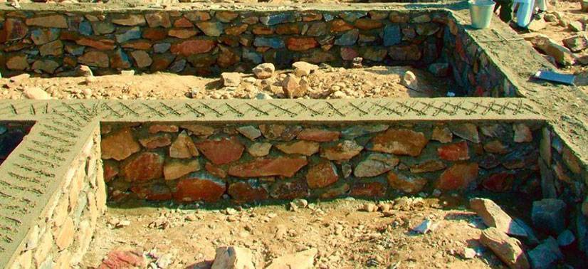 Ростверк бутовой кладки выступает за границу «нулевого» уровня всего на 500-600 миллиметров. То есть, высота внешней кладки равняется всего двум-трем слоям бутового камня.