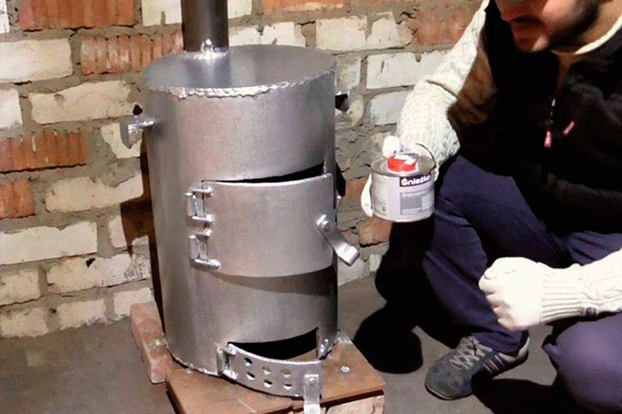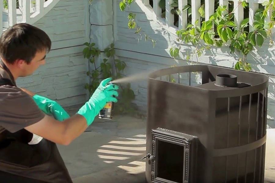 Краска для банной железной печи кроме стойкости к температуре должна защищать от повышенной влажности. Тогда держаться она будет более продолжительный срок.