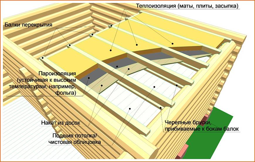 Утепление потолка в бане с холодной крышей в зависимости от особенностей кровли