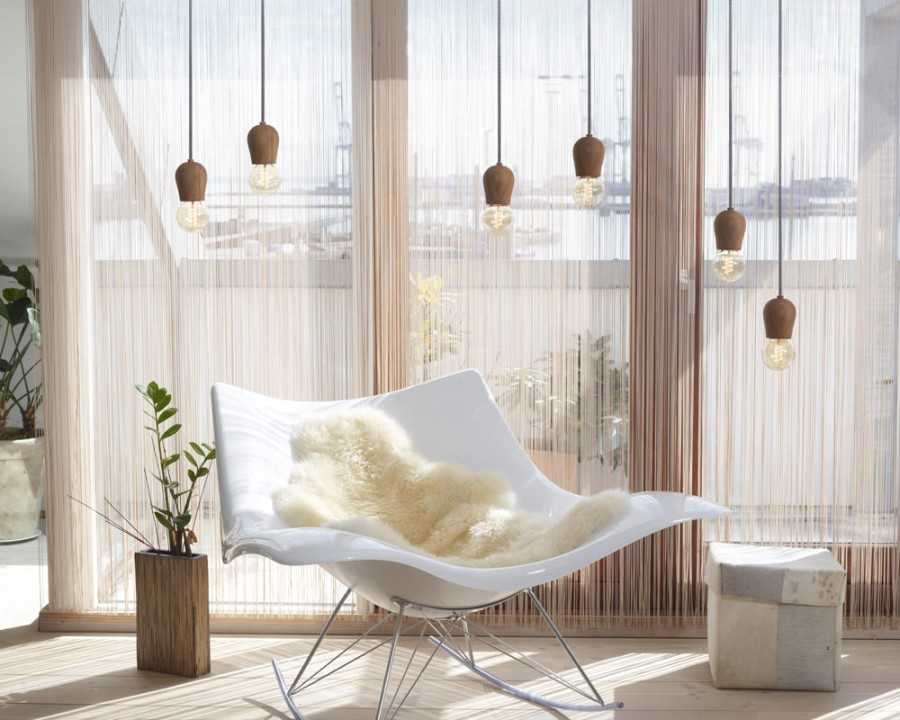 Создают воздушную легкую атмосферу в помещении. Сделаны в виде ниспадающих веревочек во всю длину — от потолка до пола. Защитить от солнечного света не смогут, но их прекрасно дополняют портьеры.