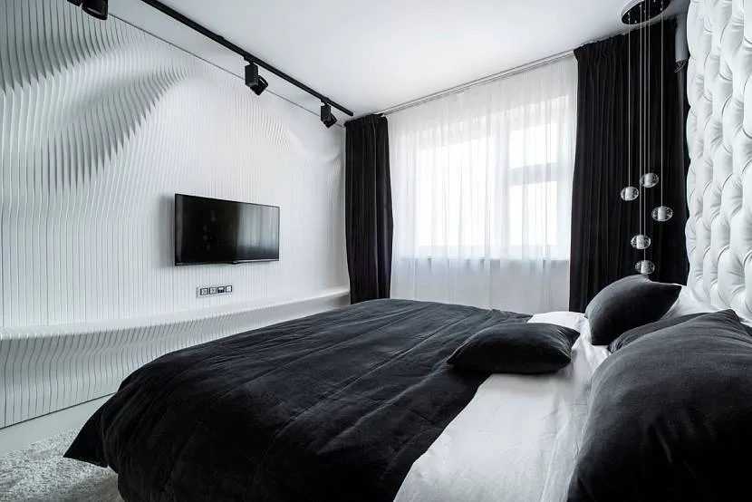 В спальнях, наличие большего количества чёрных предметов интерьера будет вполне уместно. Глубокий чёрный успокаивает глаза.