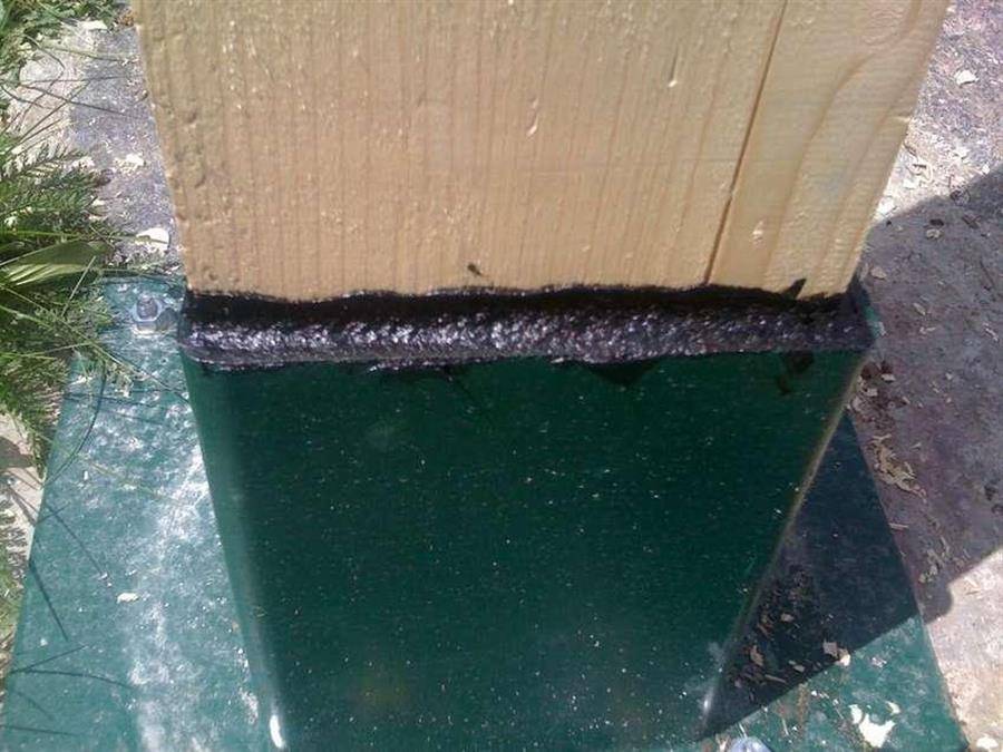 Щели между балками и фиксаторами тщательно замажьте любым водостойким веществом, чтобы предотвратить попадание влаги.