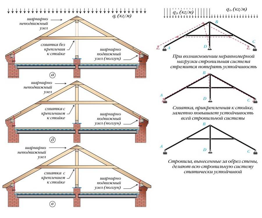 Обязателен расчет прочности стропил и степени возможной деформации при различных условиях.