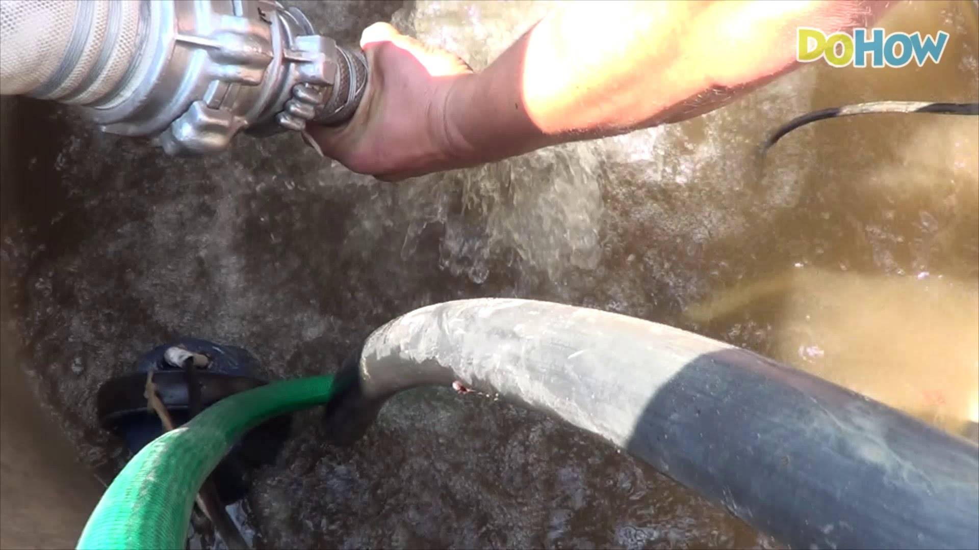 - нагнетательный шланг опускают в бак с водой, а второй шланг из резервуара опускают в скважину;