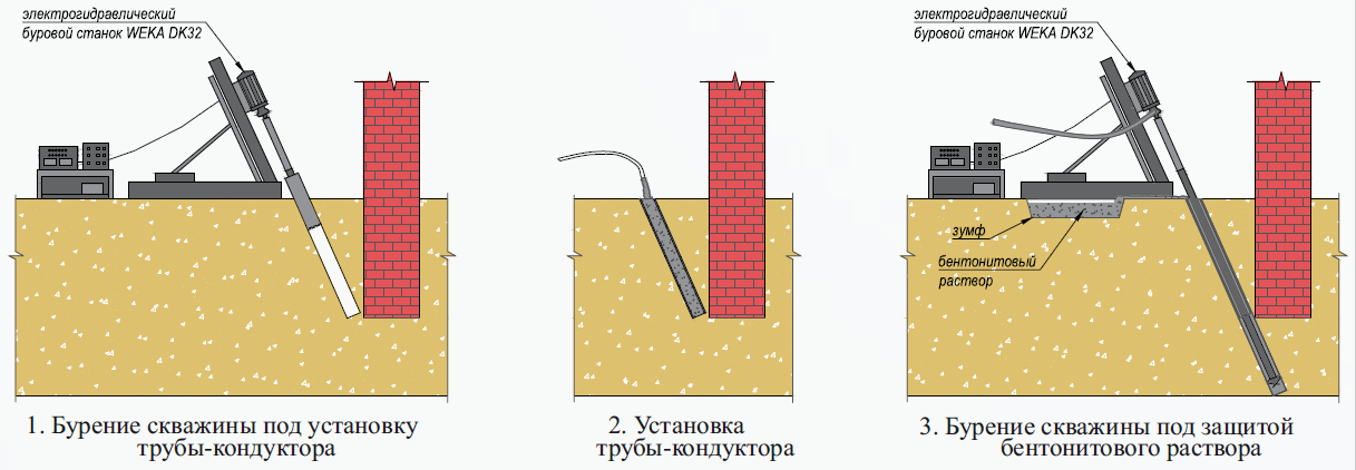 Технология выполнения бурильных мероприятий предусматривает возможность использования инвентарных труб для защиты поверхности канала, сформированного в грунте.