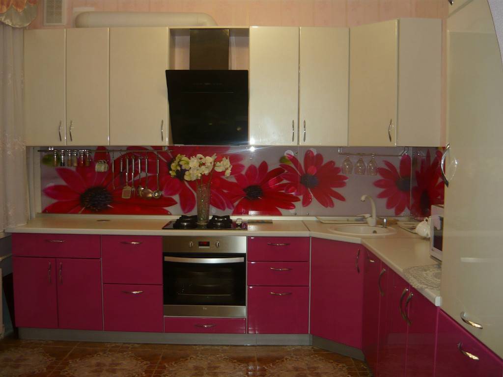 Фуксия – цвет для тех, кто открыт для всего нового. Яркий кухонный гарнитур – нестандартное, но вполне реализуемое решение. Хорошо будет смотреться в просторных кухнях с нейтральной или металлической отделкой.
