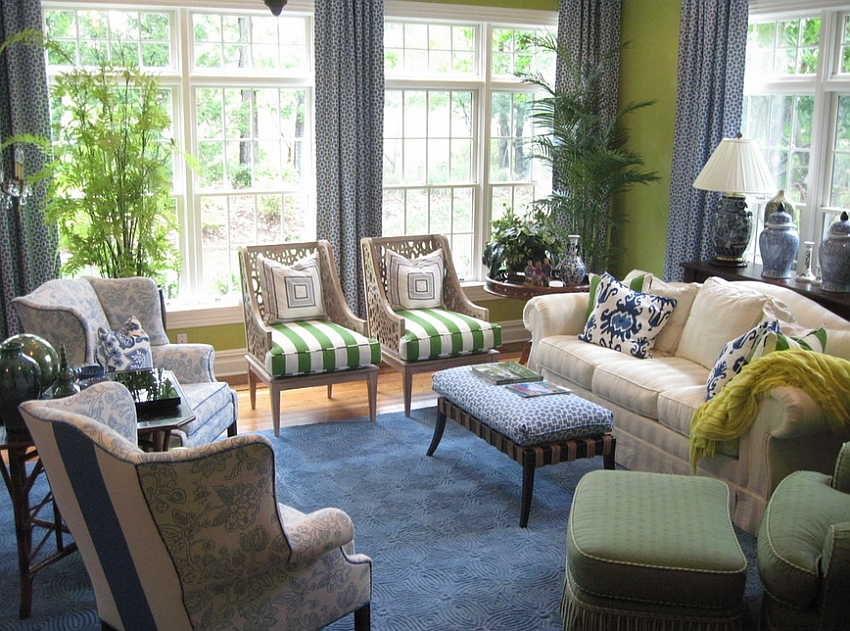 Светло-зеленый колер внесет нотки летней свежести и прохлады. Главное, не перегружать им помещение.