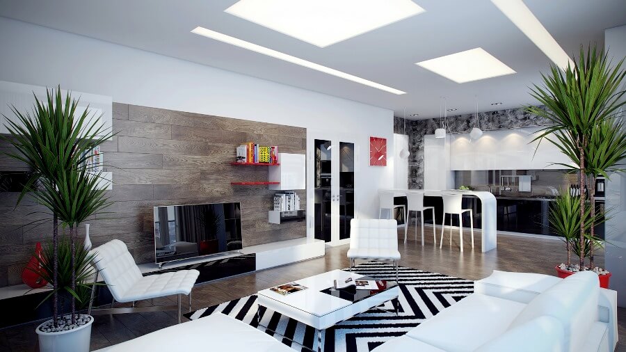 Вкрапления зеленого для оживления дизайна современной комнаты
