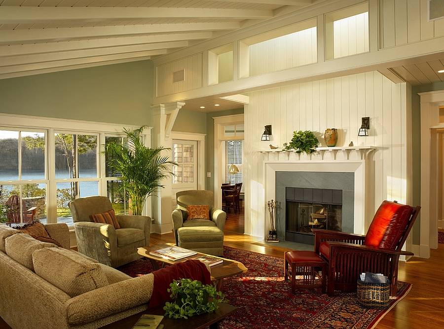 Если окна выходят на южную сторону, то гостиная может быть и холодных оттенков, так как в комнате достаточно дневного освещения. Небесно-синий, бирюзовый и белый.