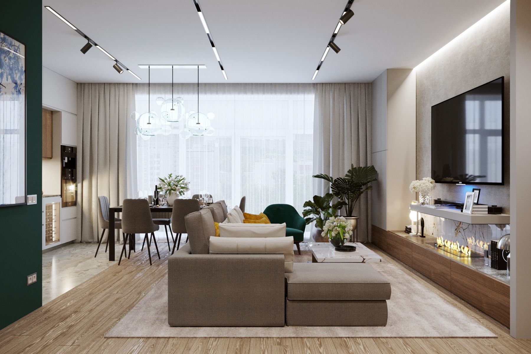 Вкрапления зеленого для оживления дизайна современной комнаты
