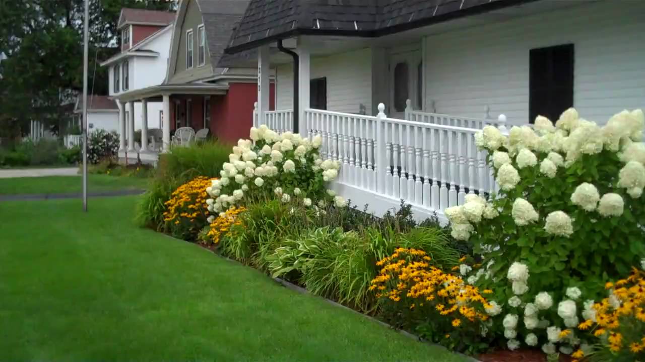 Вдоль живой изгороди из гортензии можно высадить папоротники, злаки (просо, мискантус, ганонеклоа), достигается впечатляющий контраст.