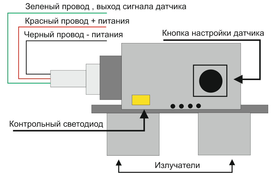 - световой. Датчик состоит из двух частей: источника света и фотоэлемента-транзистора. При пересечении движущимся объектом линии, между ними свет перестает поступать на фотоэлемент-транзистор, что приводит к замыканию цепи лампы;