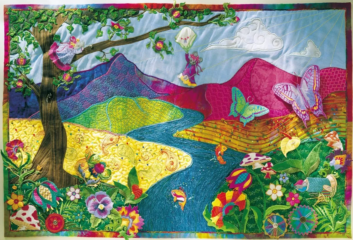 Этот вариант декора стен больше подойдёт для людей, которые любят заниматься шитьем. Перед тем как начать изготовление картины нужно правильно подобрать ткань и будущий узор. Они должны сочетаться по цвету с другими элементами интерьера комнаты, например мебельной обивкой или шторами.