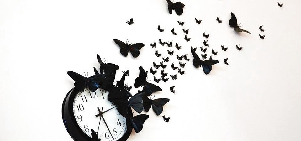 Похожим образом можно оформить стену с часами: бабочки разлетаются по стене и садятся на краешек часов.