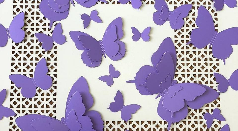 Бумага и картон считаются наиболее распространенными материалами для создания декоративных бабочек, поскольку позволяют создать шаблон фигурки по контуру быстро и без особых усилий. К тому же, эскизы из таких материалов достаточно просто красятся и крепятся к поверхности, а это значит, что ни один из этапов не вызовет у вас затруднений.