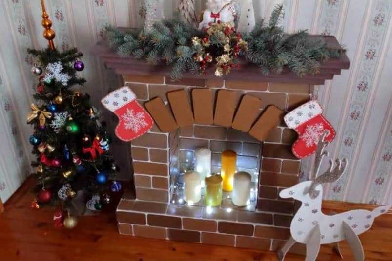 - одноразовыми. Чаще всего такой декор изготавливают к новогодним праздникам и Рождеству. Такая форма камина выполняется из недолговечных и недорогих материалов (бумаги, картона, коробок и т.п.). После окончания праздничных мероприятий поделка отправляется в утиль;