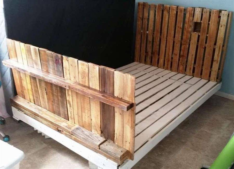 Установите на основание изголовье и изножье заранее собранные из поддонов и покрытые лаком