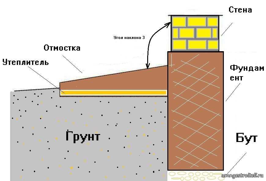 Например, один из них представлен на рисунке. Он может быть использован для устройства отмостки на пучнистых грунтах с суровыми зимами