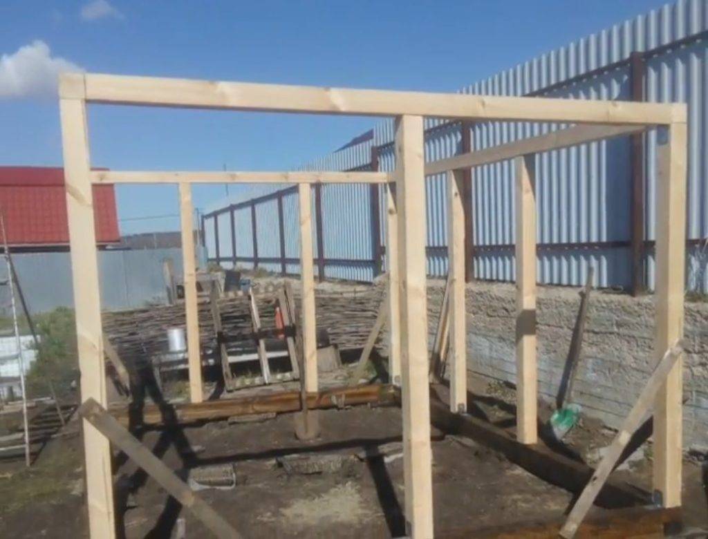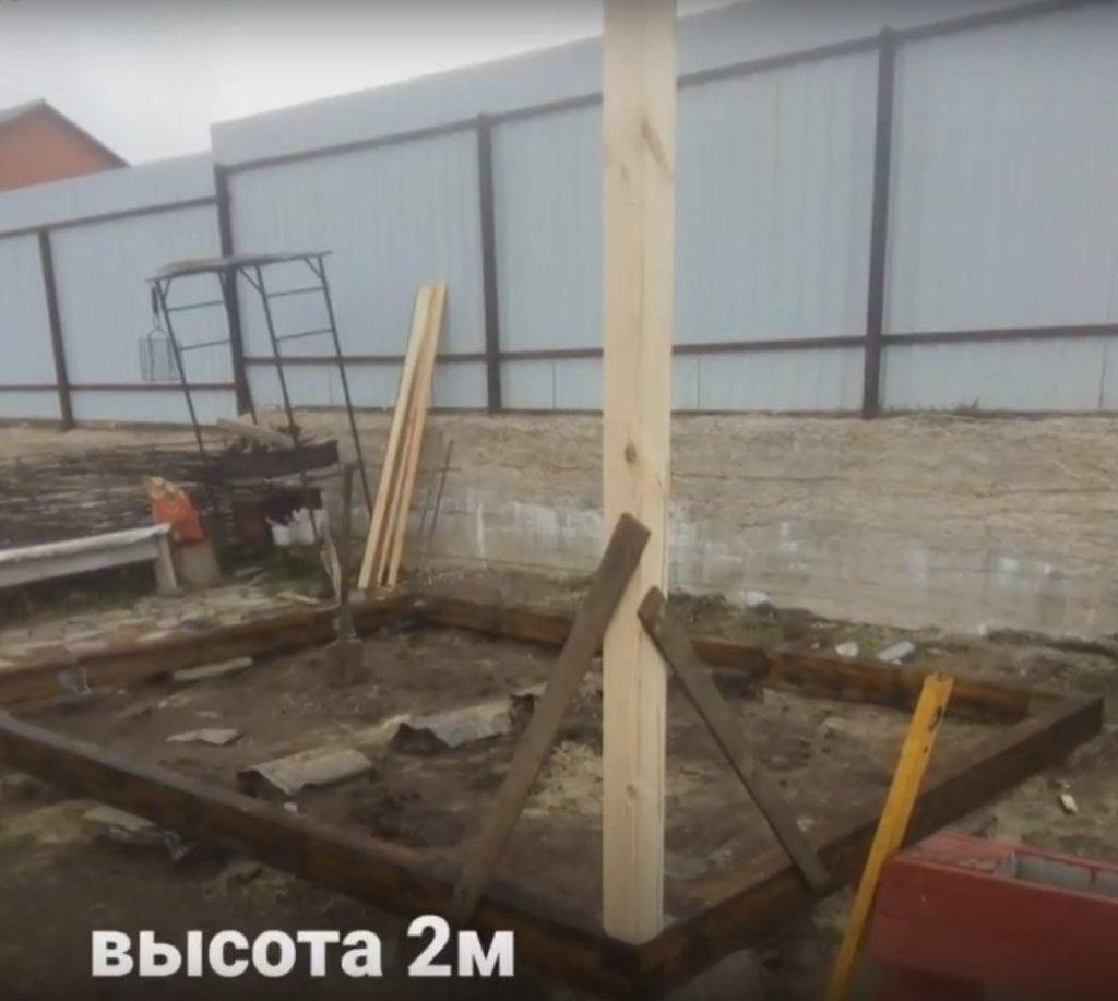 были подготовлены вертикальные деревянные столбы, к которым будет крепиться решётка;