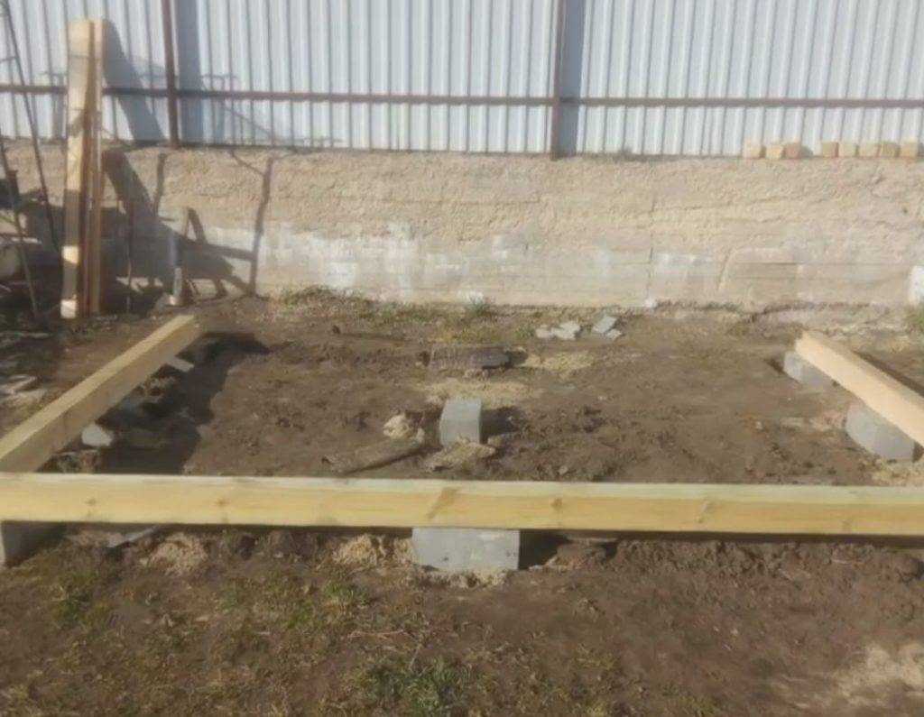 Нижняя обвязка представляет из себя деревянное основание из бруса 150 на 100 см, на котором держатся столбы. Внутри обвязки будут закреплены лаги, на которые будут крепится доски пола.